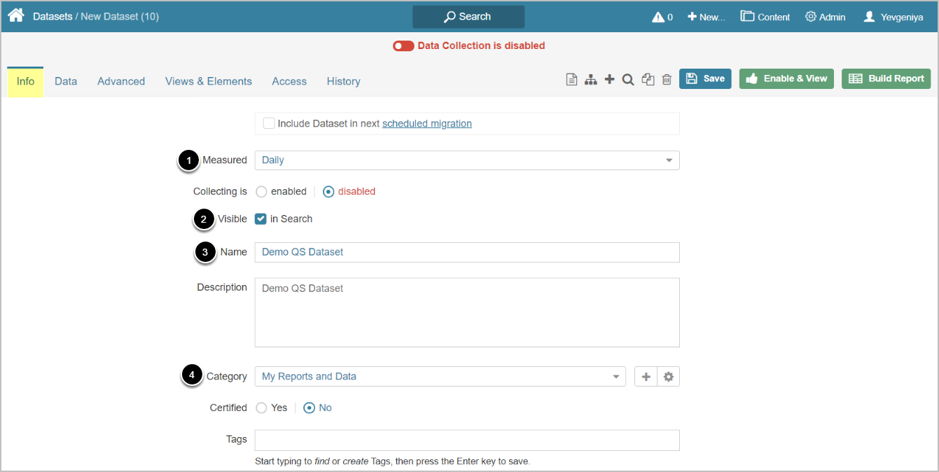 - Specify Category to place the Dataset