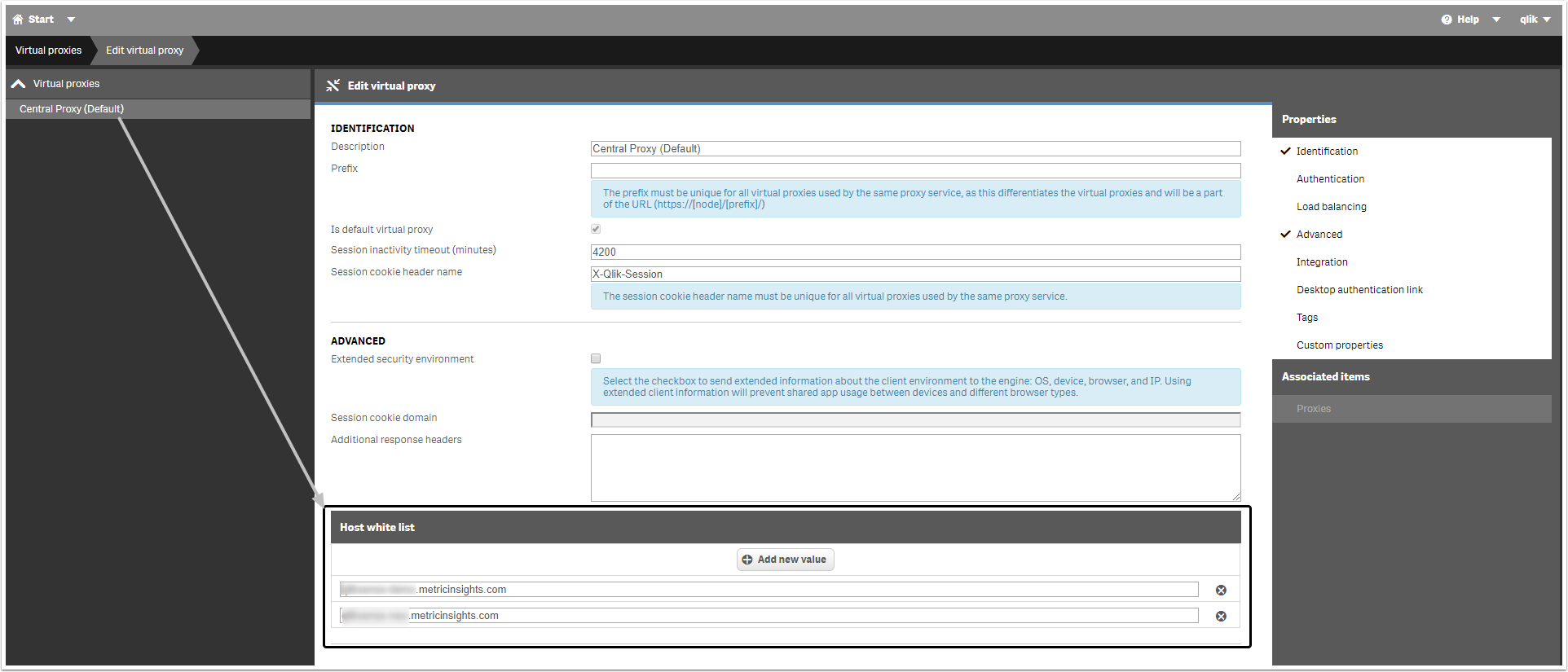 - From the Virtual Proxies menu, access the Host white list via Virtual Proxy > Profile > Properties > Advanced tab.