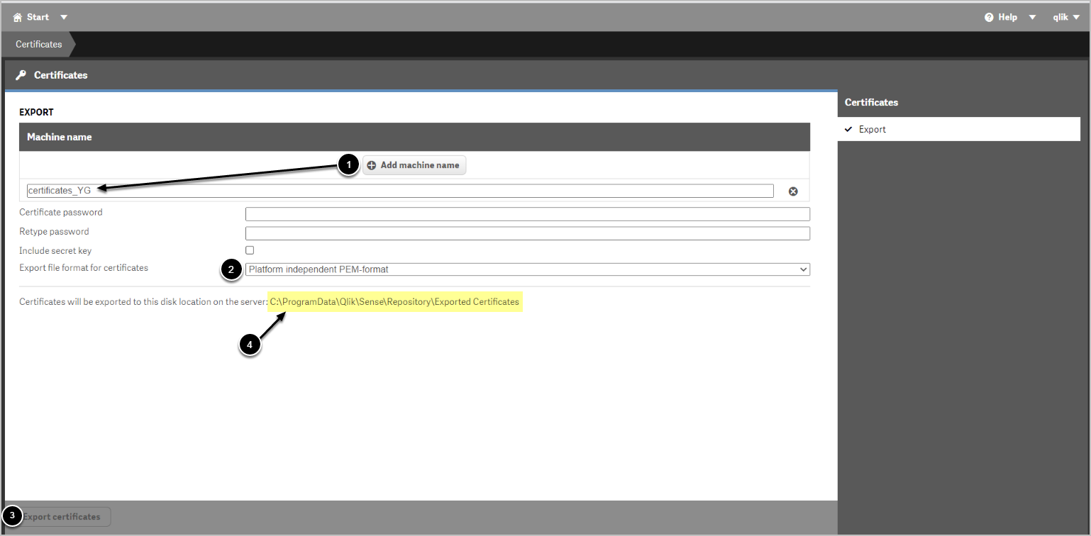 - Generate Qlik Sense certificates on QMC. Find more details below.