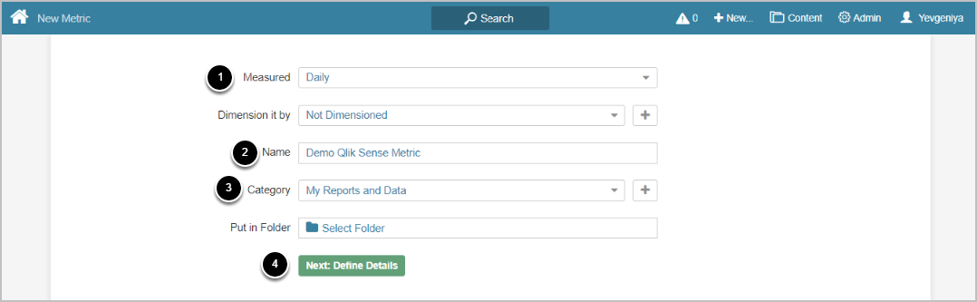 - Choose Qlik Sense Report that should serve as a basis for Metric- To pre-filter Qlik Sense data before fetching it, click Manage Filters
