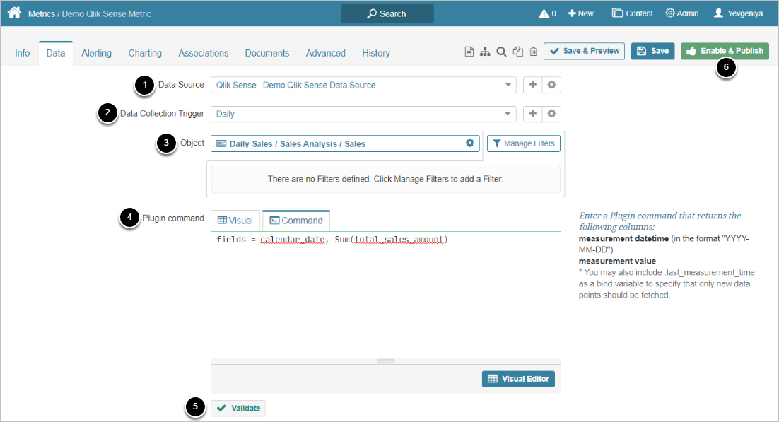 This article details how to create Metric using a Qlik Sense plugin as a Data Source.