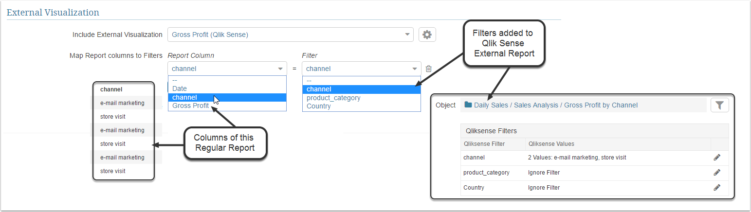 2. Map Report Columns to Qlik Sense filters applied to the External Report