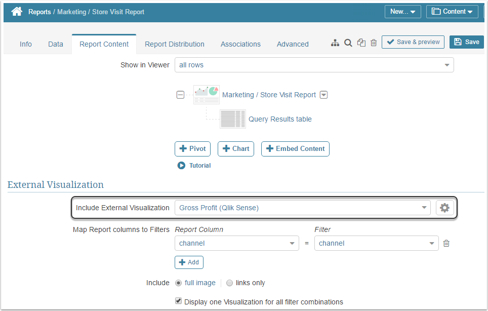 Include:- 'full image': If this setting is selected, the Tableau visualization is going to be embedded below the Report table and Charts (if any). NOTE: Qlik Sense credentials are required to see the embedded Visualization.