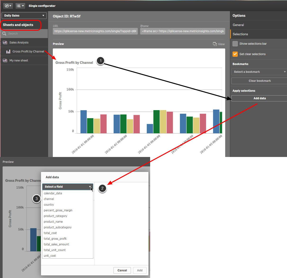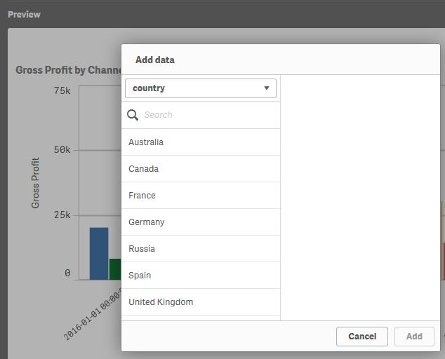 - On the right panel, you open the drop-down Add data in the the Apply selection section