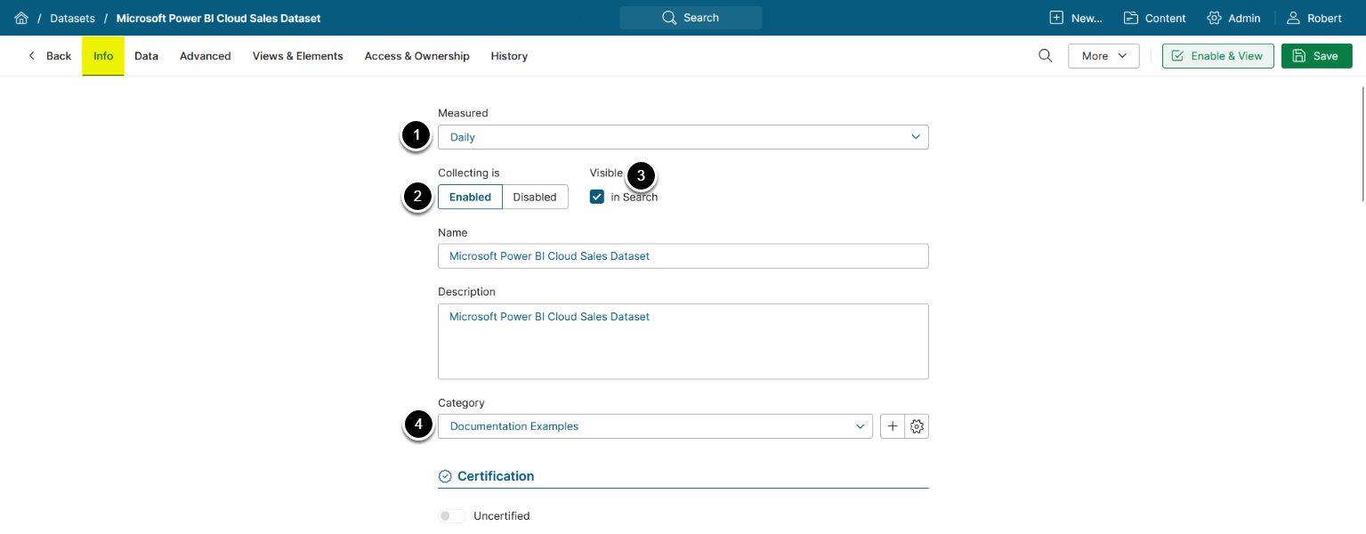 - Collecting is: Disabled by default and is enabled once you enable the Dataset