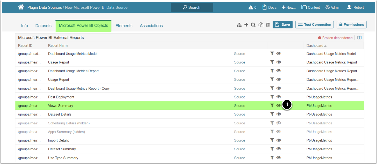 1.1. Plugin Data Source Editor > Microsoft Power BI Objects tab