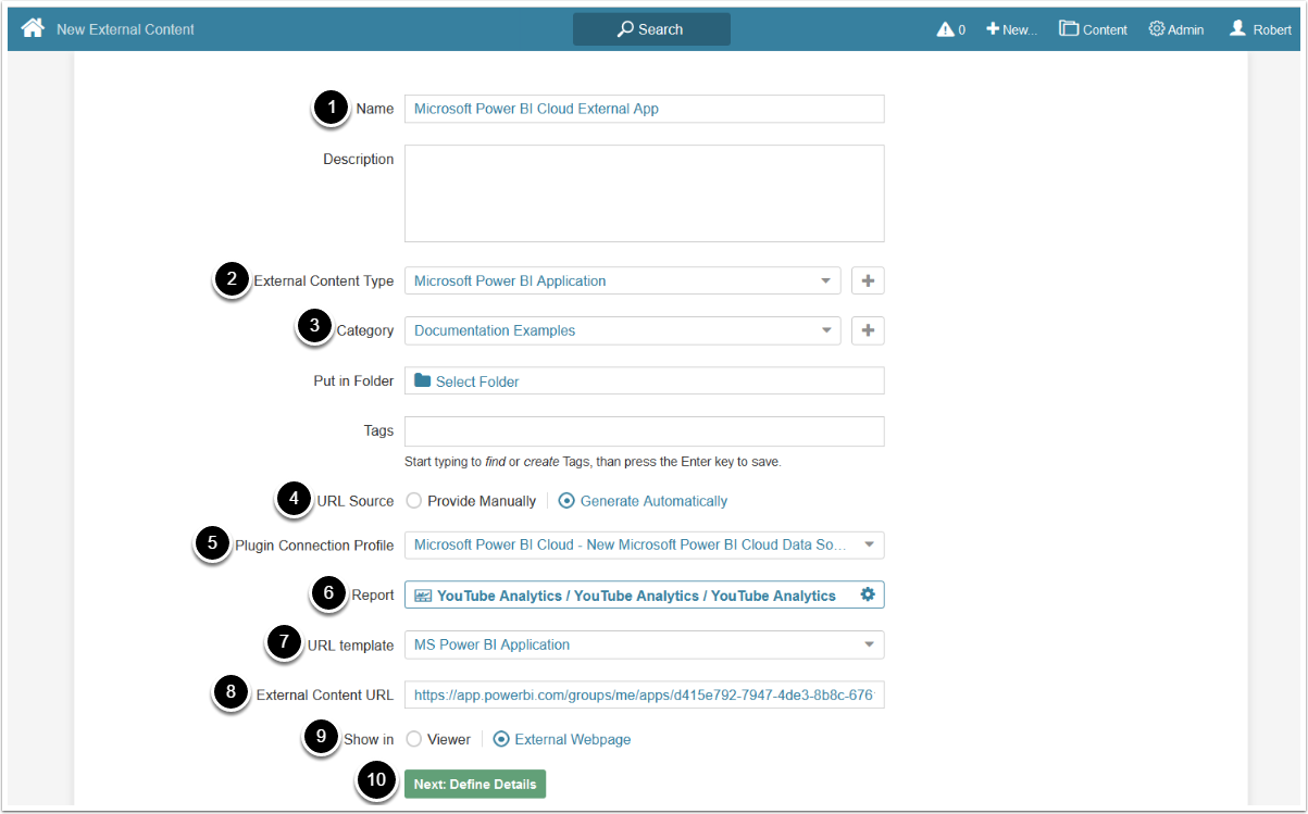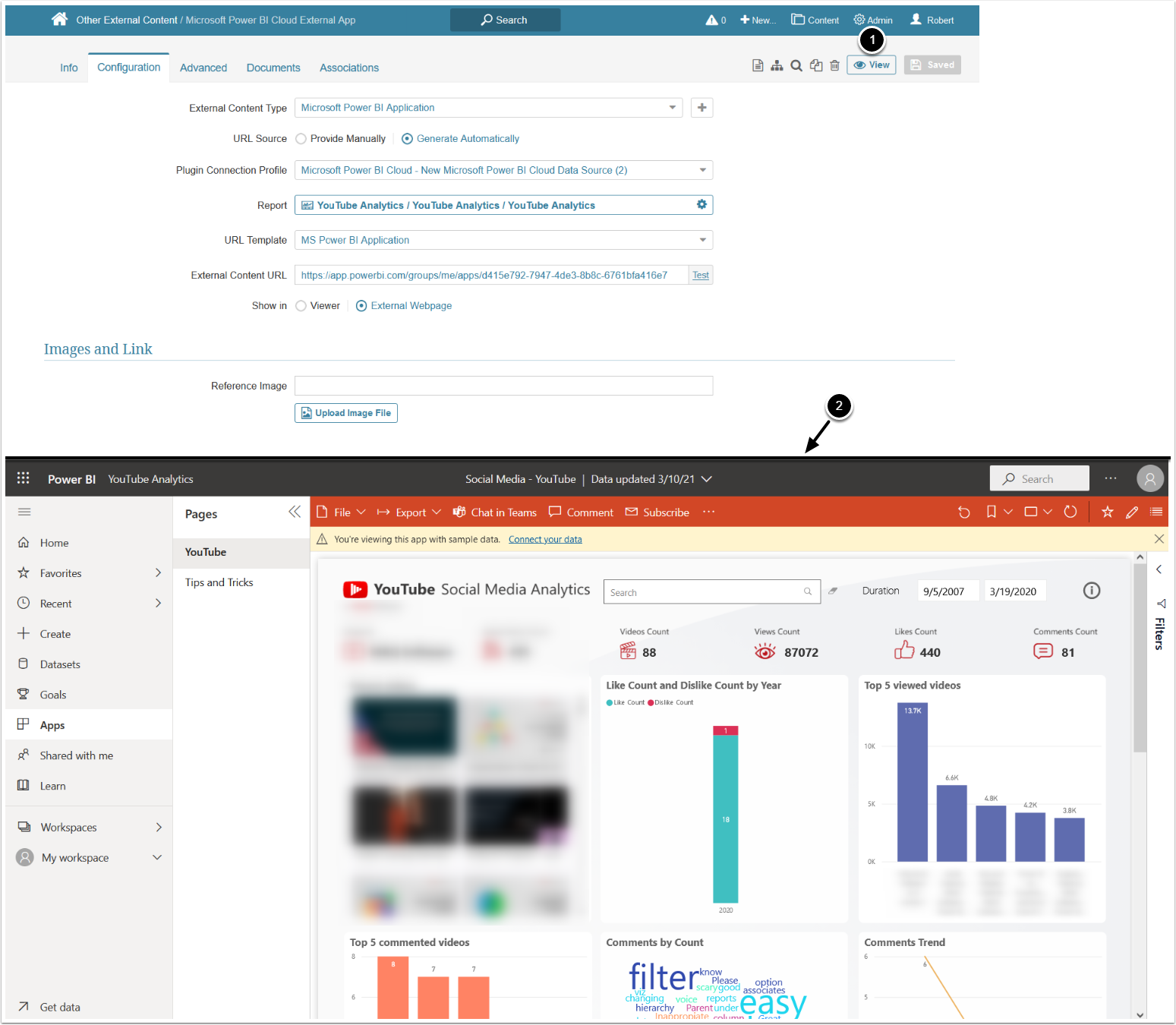 This article describes how to create External Content linked to Applications from Microsoft Power BI Cloud.