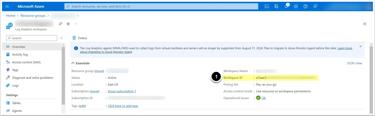2. Copy Log Analytics Workspace ID from Azure