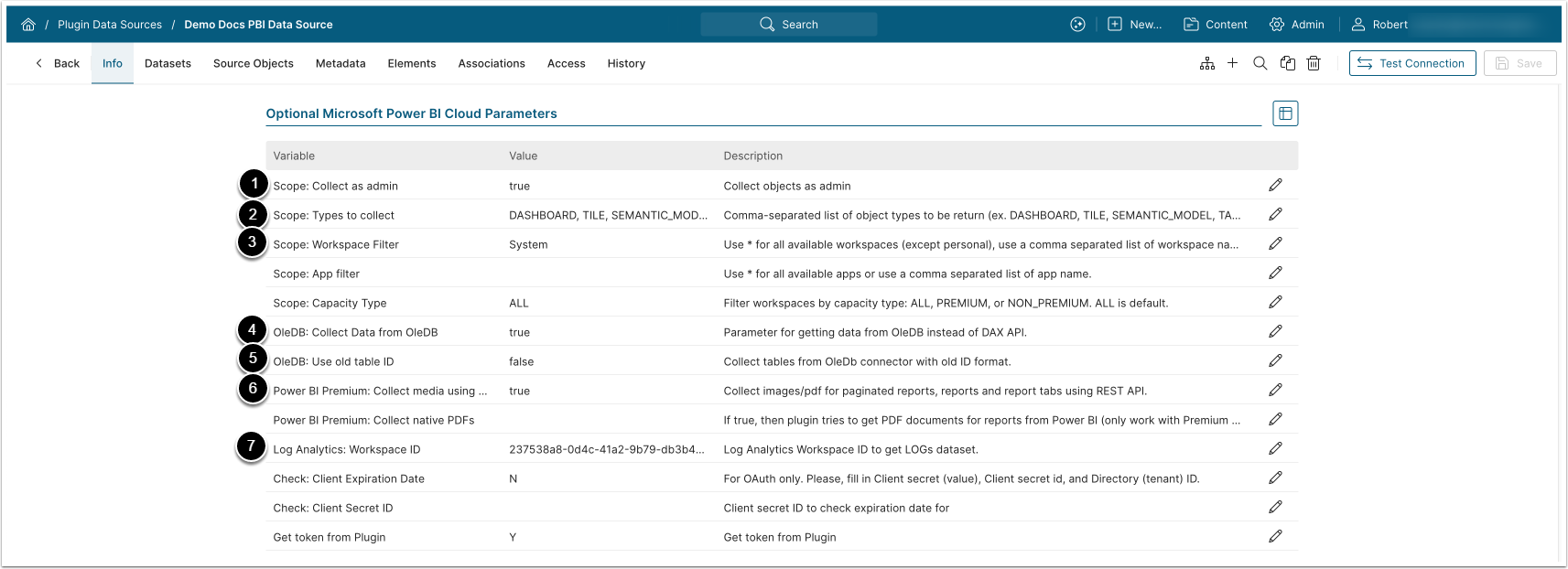 | 2 | Scope: Types to collect | DASHBOARD,TILE,SEMANTIC_MODEL,TABLE,REPORT,LOG,USAGE,USER_PERMISSIONS |