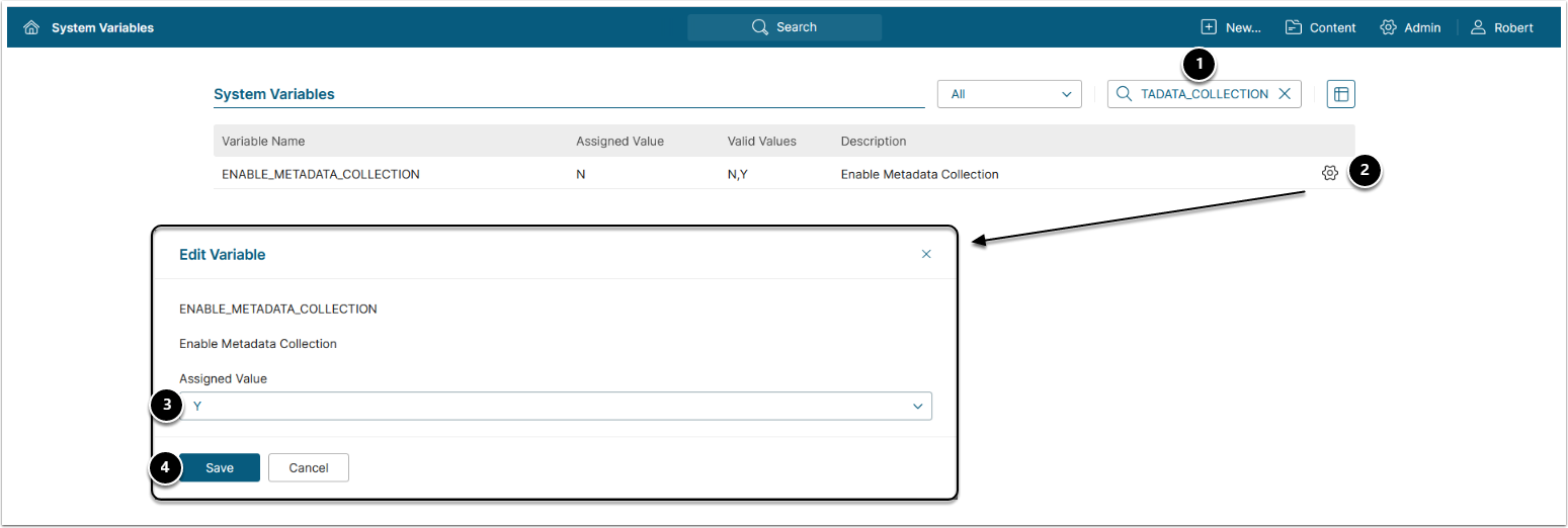 - Enter ENABLE_METADATA_COLLECTIONin the search field