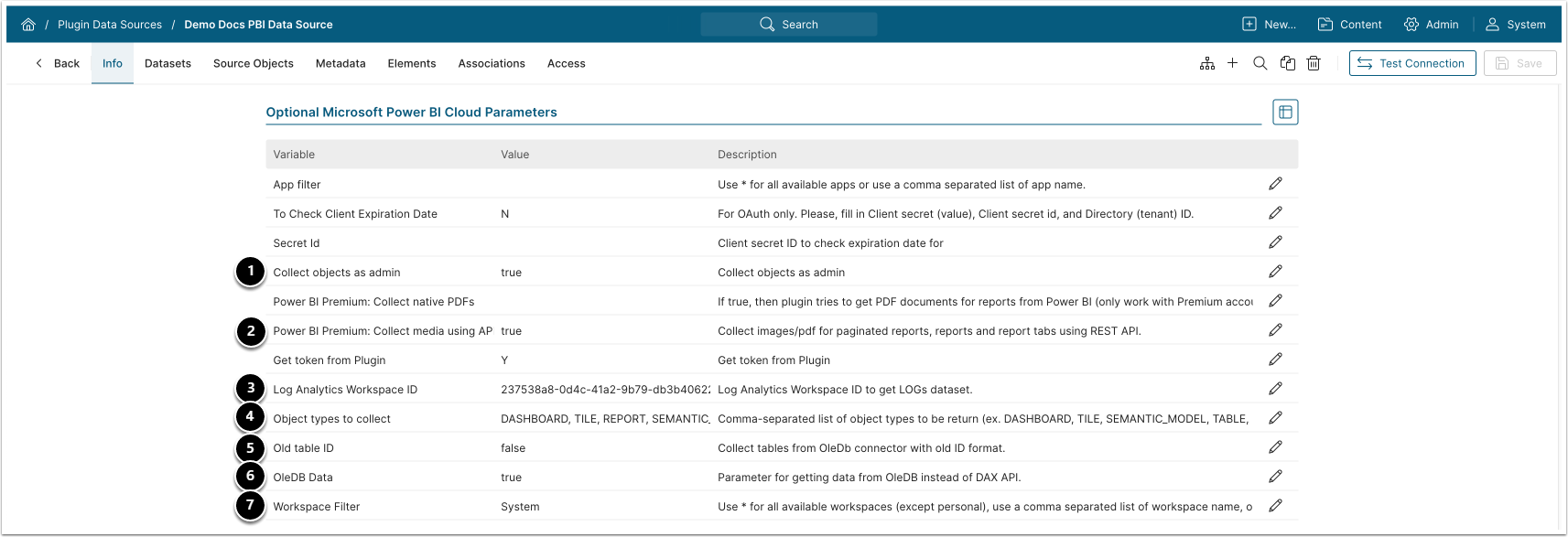 | 4 | Object types to collect | DASHBOARD,TILE,SEMANTIC_MODEL,TABLE,REPORT,LOG |