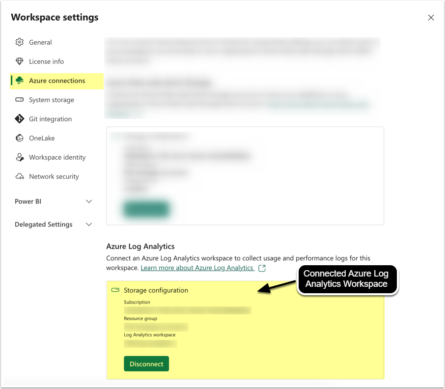NOTE: Log Analytics Workspace is not a Power BI workspace and needs to be created separately, as described in the Microsoft documentation referenced below.
