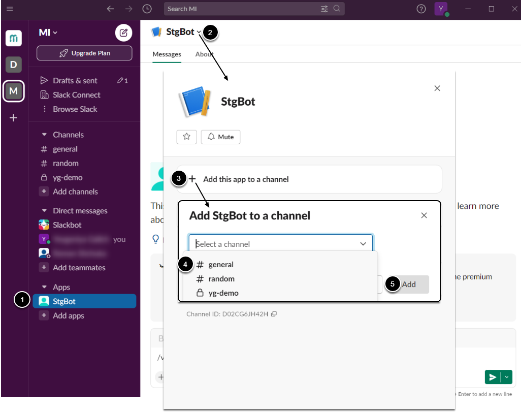 - Click +Add this app to a channel