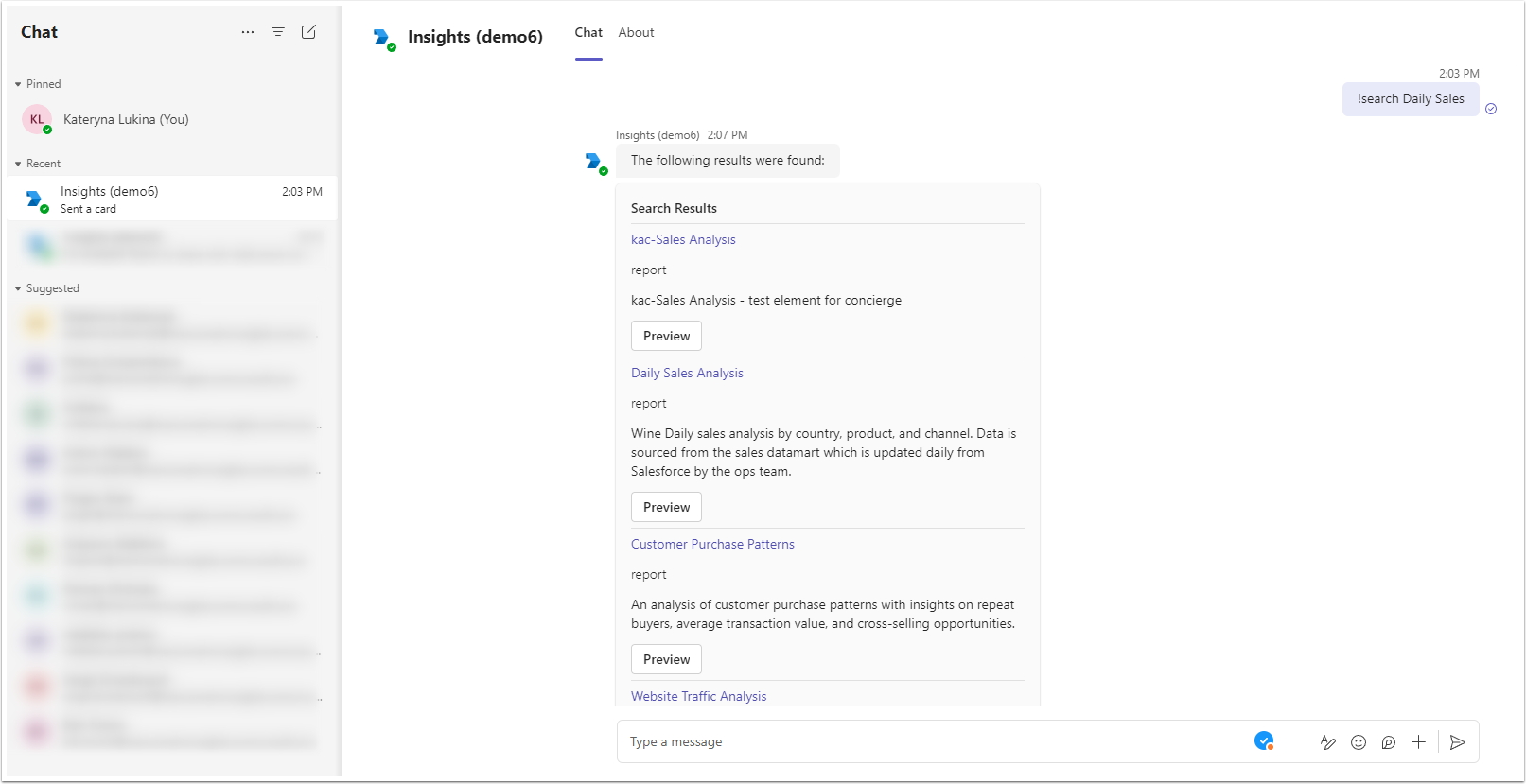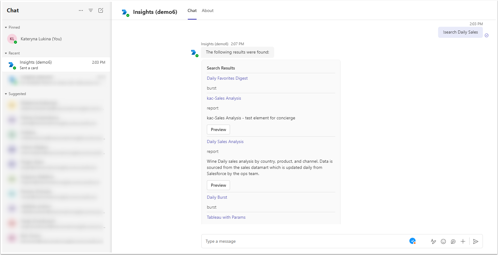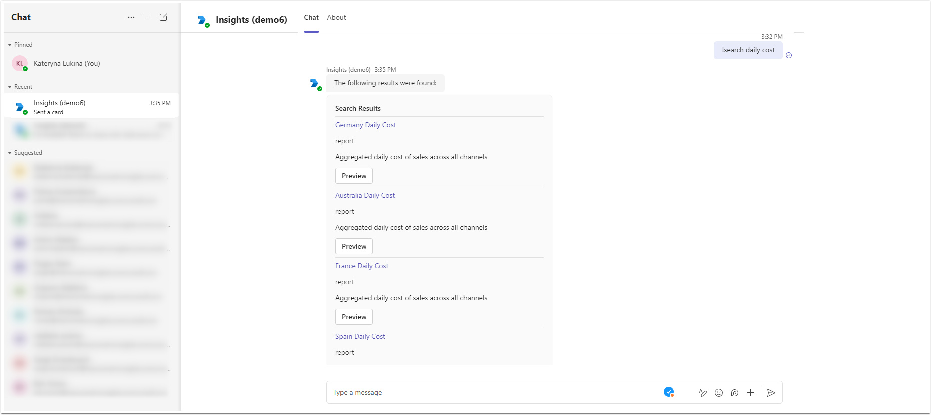 A Metric Insights' Admin, Power (PU) or Regular User (RU) may be invited to a channel in Microsoft Teams. Admins are able to see and share all the Elements available, but PUs and RUs could have access restrictions.