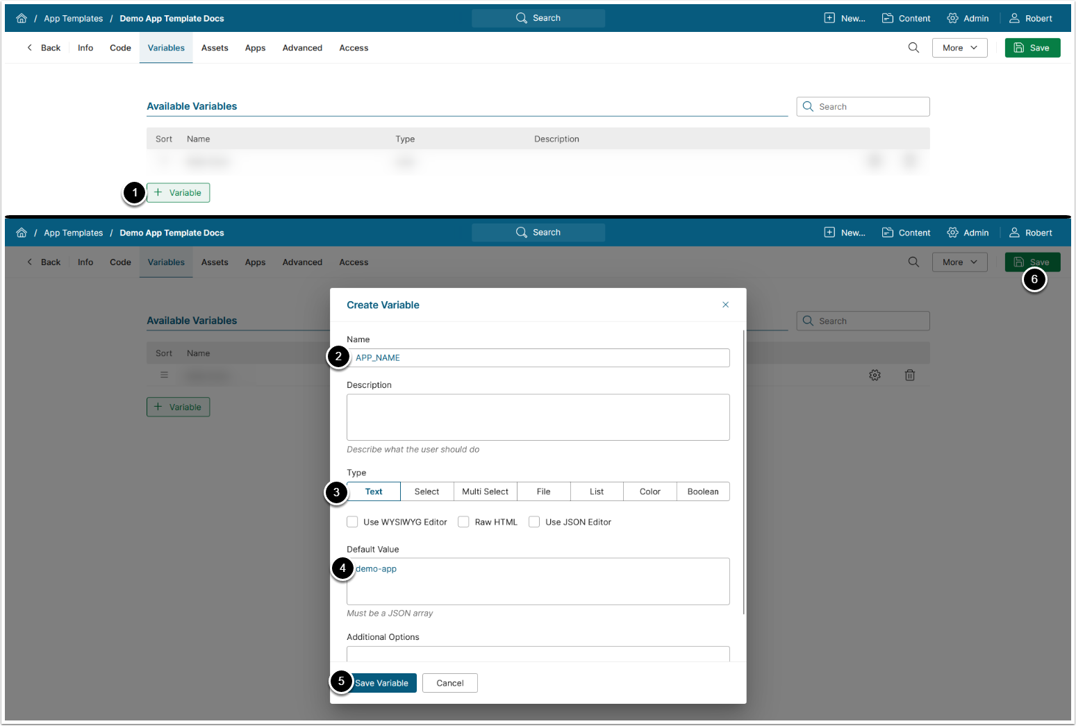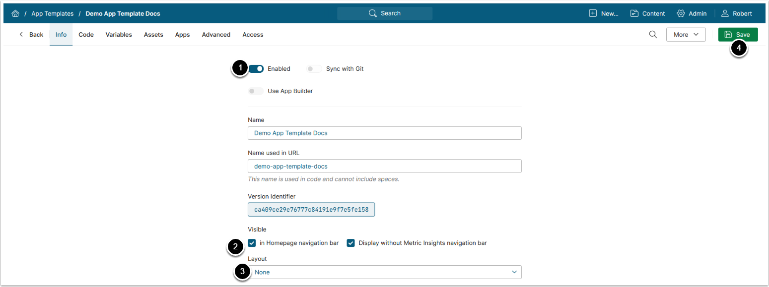 Access the App created from the current App Template. The Name used in URL of this App was utilized in the App Template Variables configuration.