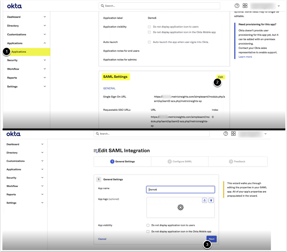 1.1. Access SAML Settings