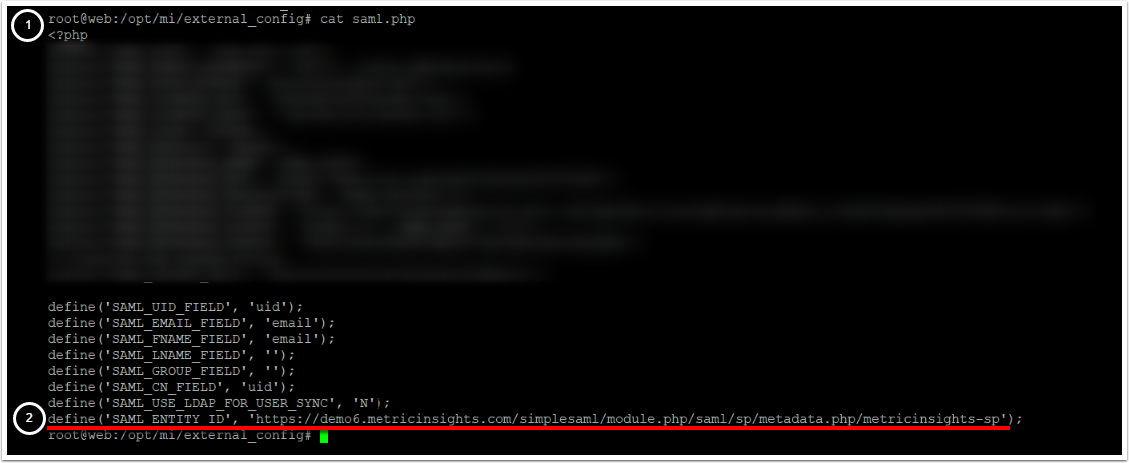 define('SAML_ENTITY_ID', 'https://<MI hostname>/simplesaml/module.php/saml/sp/metadata.php/metricinsights-sp');- Replace