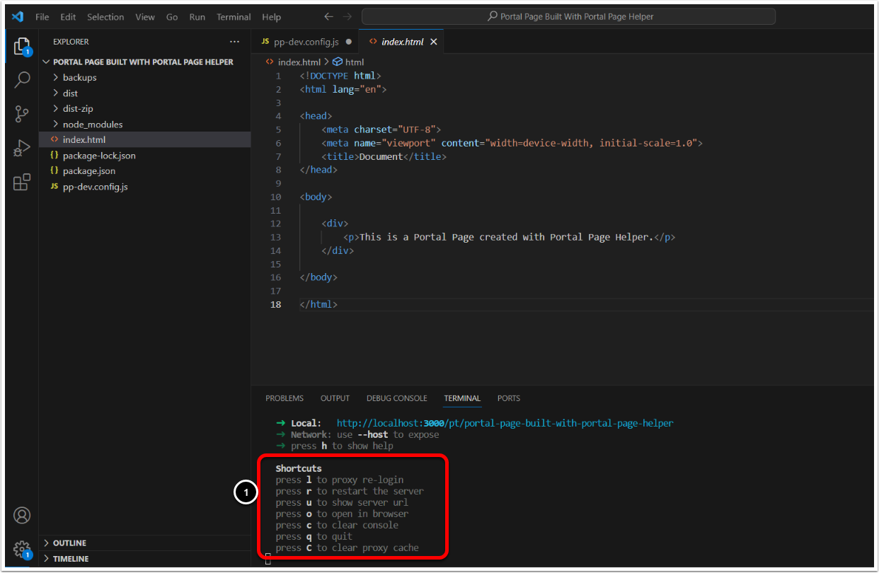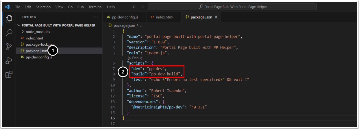 Run npm init from the local Portal Page directory and proceed entering the needed data to create a package.json file.