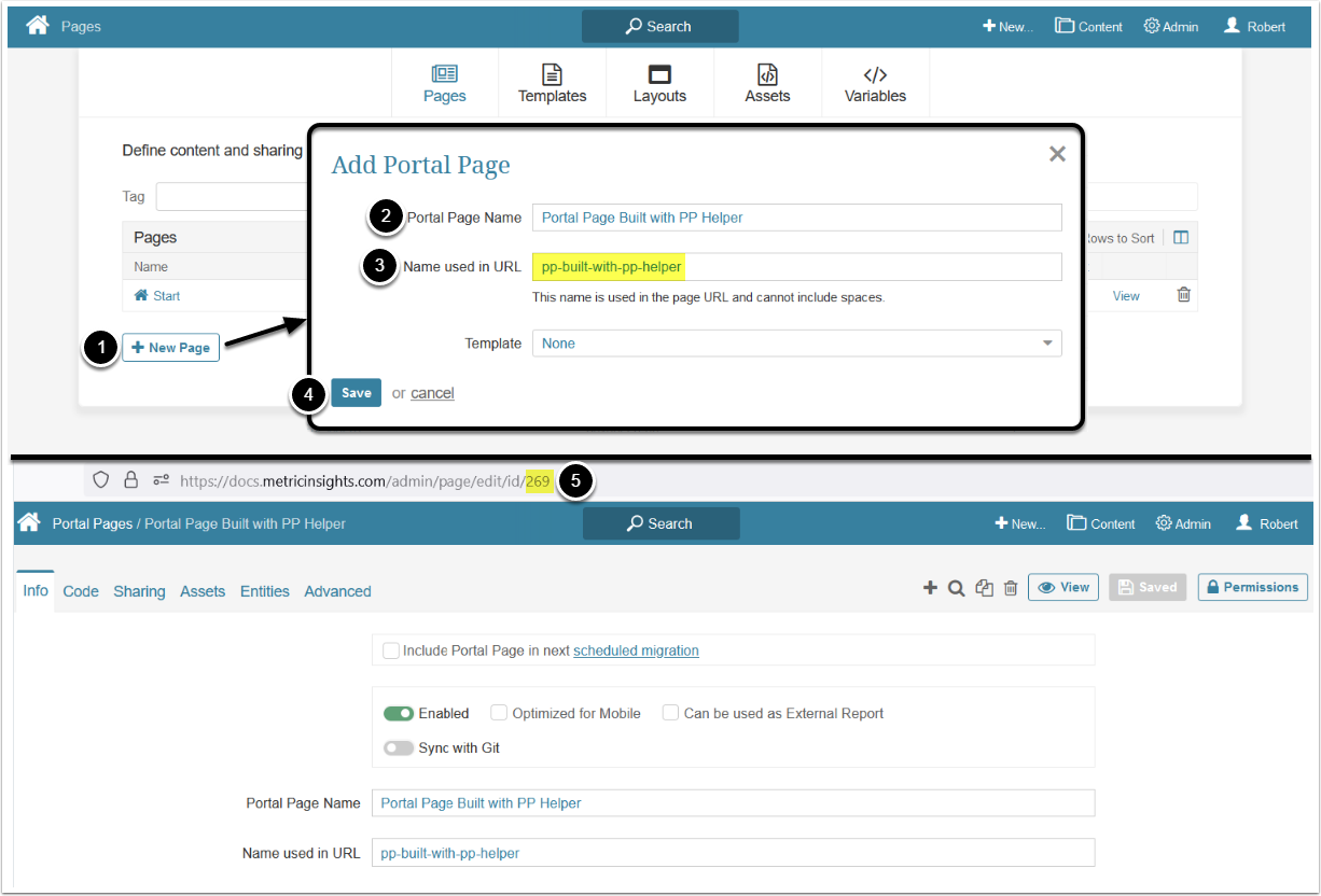 - Copy and note down the Portal Page's ID from the URL, this value will also be needed for further configuration