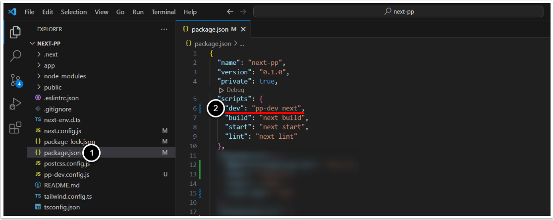 devscript to"pp-dev next"