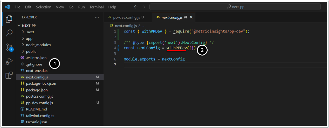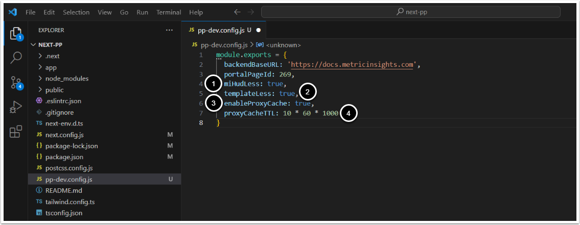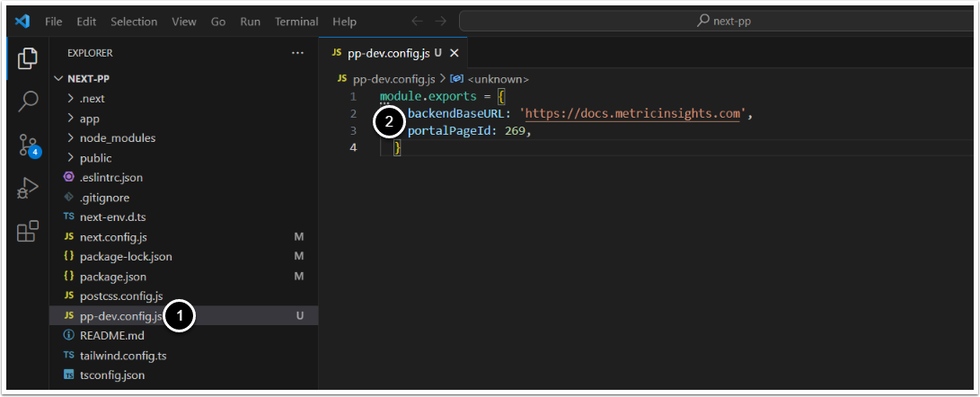 pp-dev.config.js - Enter the following code: