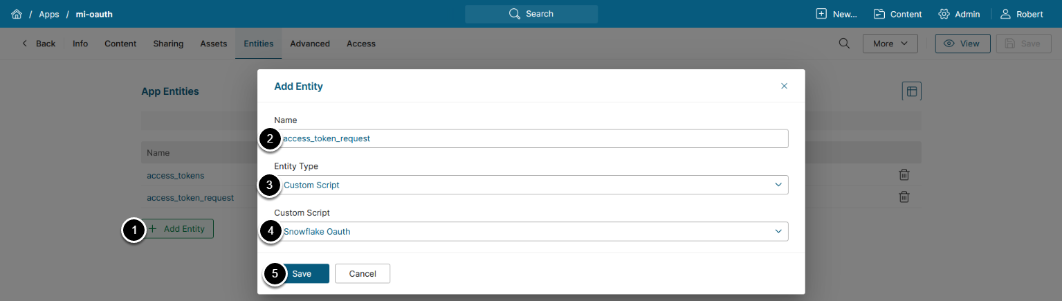 - Define a Custom Script that makes API calls to Snowflake and returns obtained access tokens to the App: