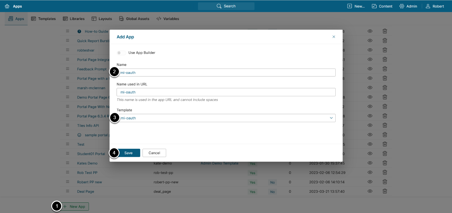 NOTE: See Overview of Apps (Portal Pages) for details on creating Apps in Metric Insights.