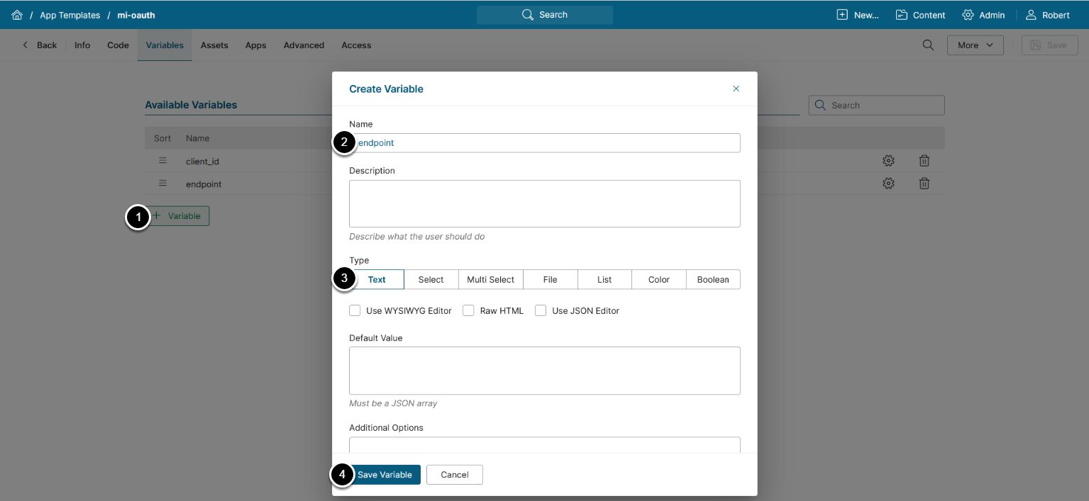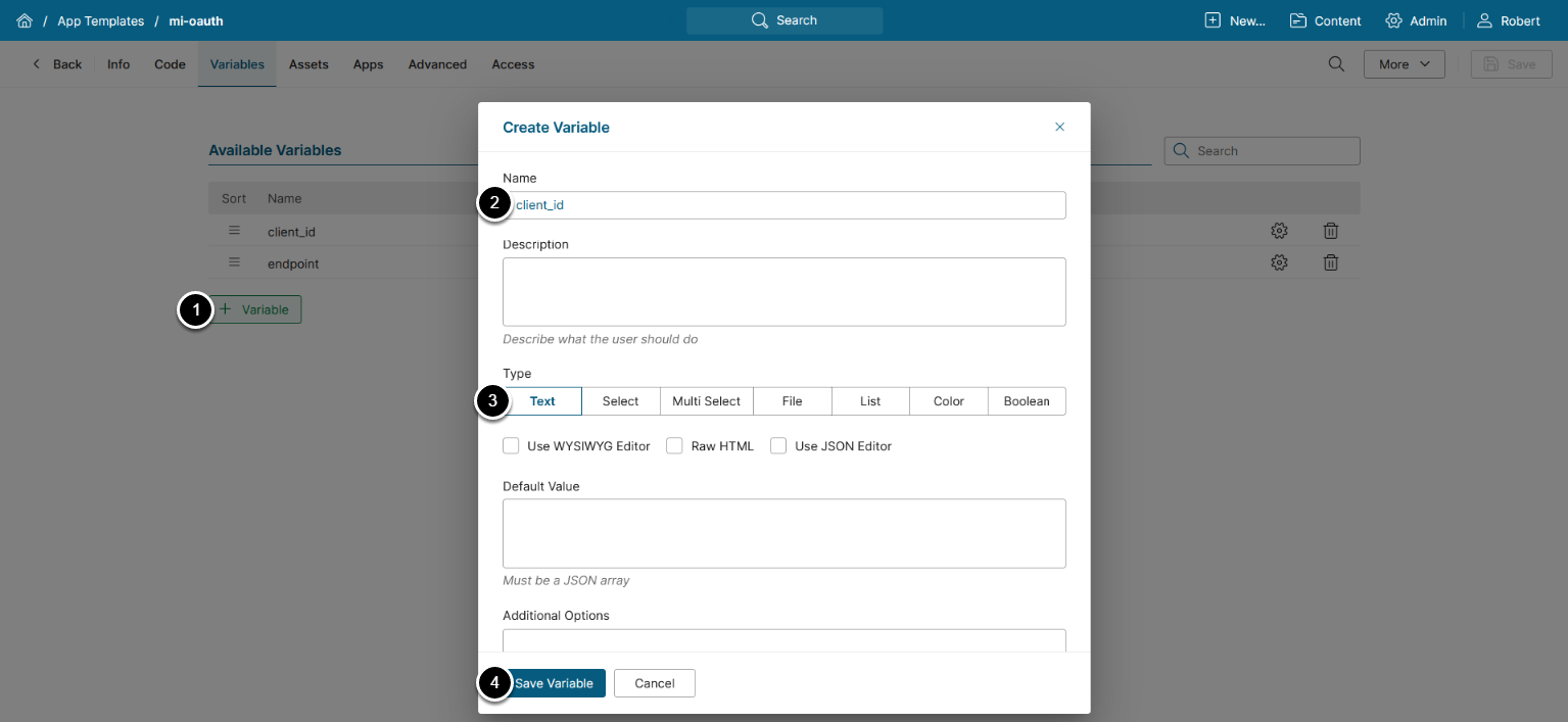 NOTE: The names of Custom Script, App Template, App, and associated Variables, Parameters, and Entities must exactly match the names specified in the instructions below for the configuration to function.