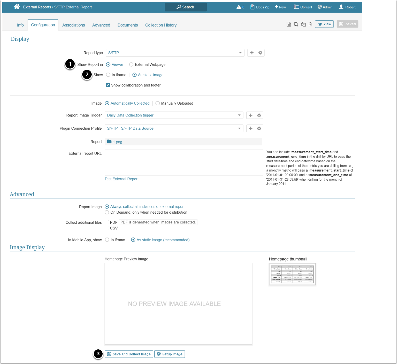 - Define whether you want the Report content to be updated manually or automatically. In case you select Automatic Collection, define the following settings:
