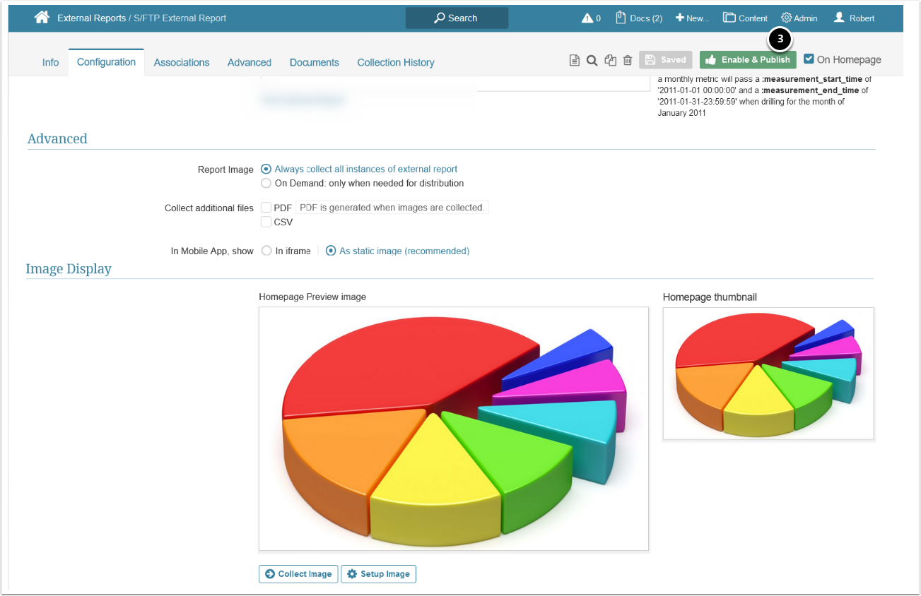 - Once the preview and thumbnail images have been collected, select [Enable & Publish] to save your progress