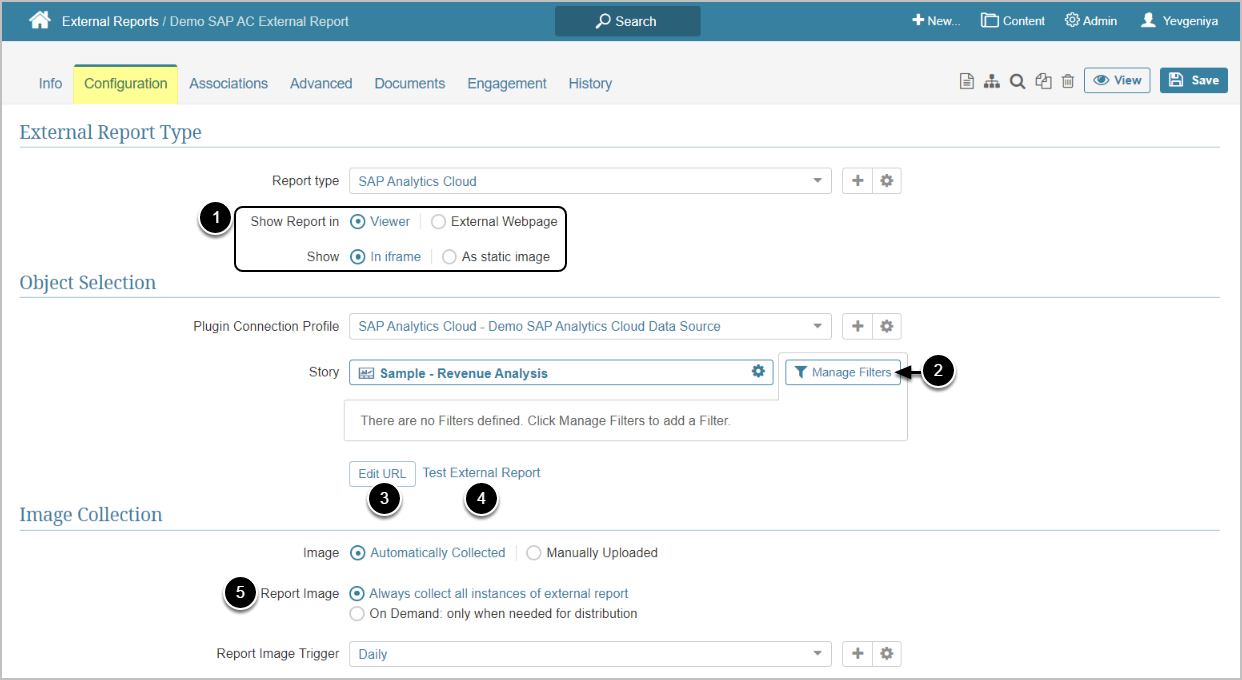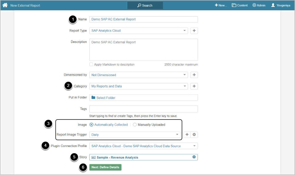 - Select the SAP Analytics Cloud Story to serve as a source for External Report