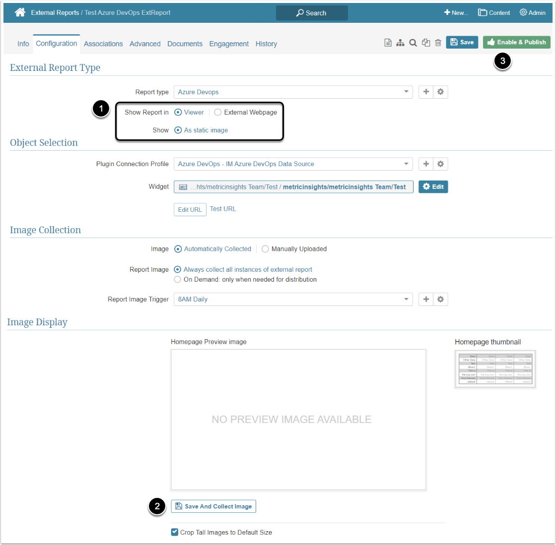 - Image: Define whether you want the Report image to be updated manually or automatically