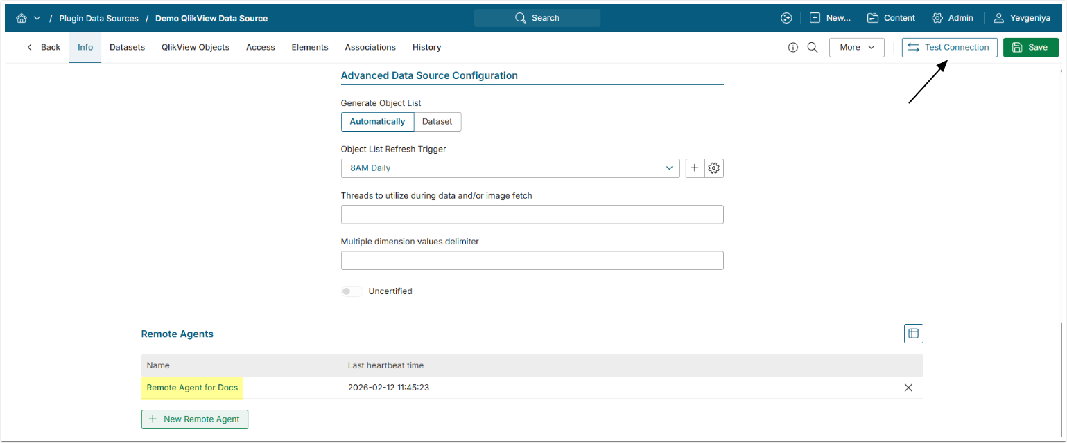 When setting up connectivity to QlikView you can use the Test Connection button to verify that your Plugin parameters are correct.