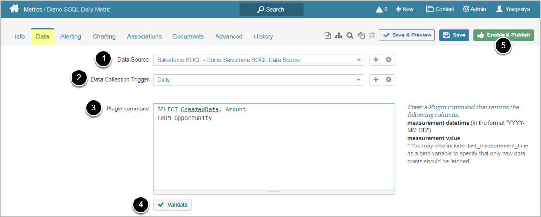 This article shows how to create Metric using a Salesforce SOQL plugin as a data source.