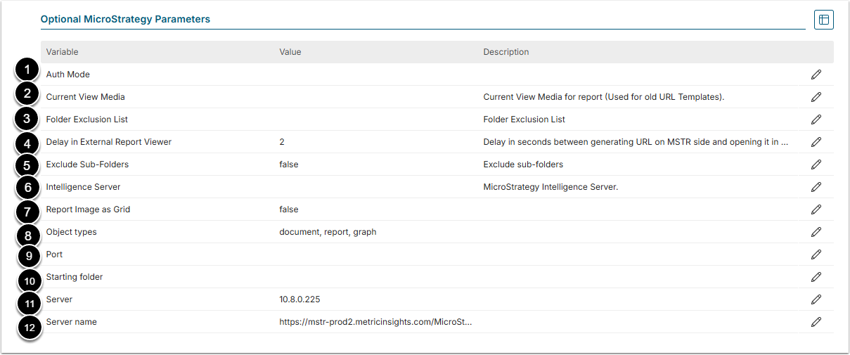 | 11 | Server | If the Server field is blank, than it's taken from the User-facing URL field or Intelligence Server parameter. |