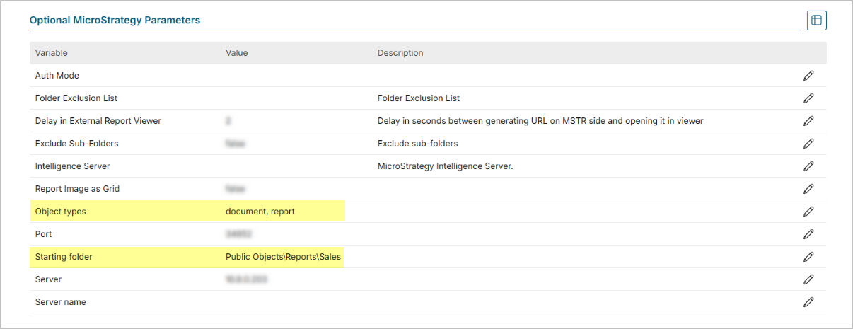 | 3 | Folder Exclusion List | List the folders that do not need to be pulled from MicroStrategy. In order to exclude a folder from Objects, provide the folder path (with a root folder and without Project name). Use comma as a delimiter. |