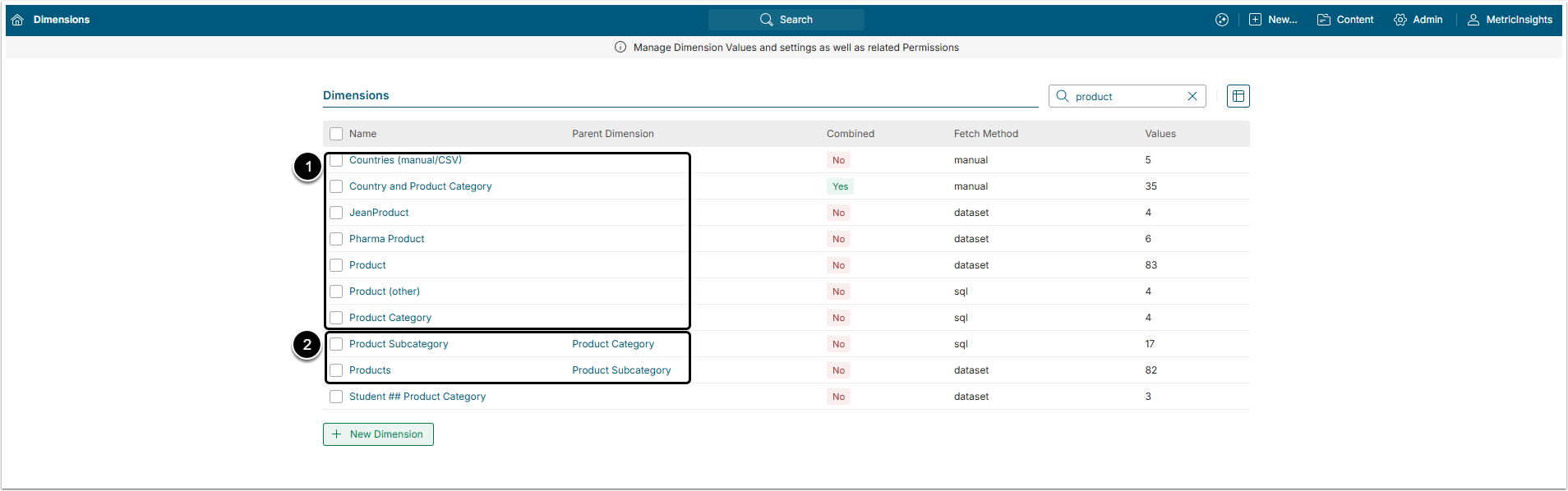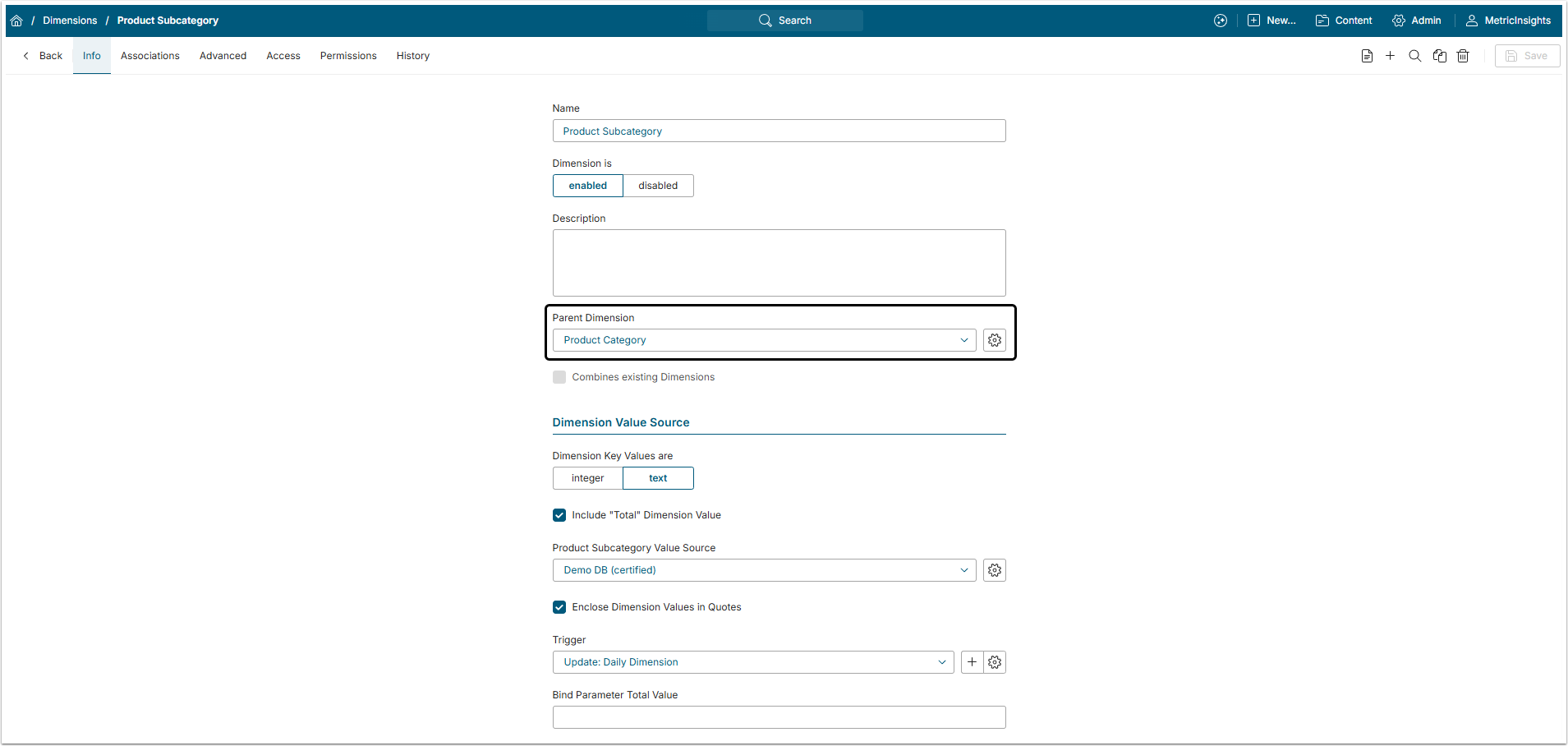 NOTE: A Parent Dimension must have Dimension Values before it can be selected as a Parent to any other Dimension.