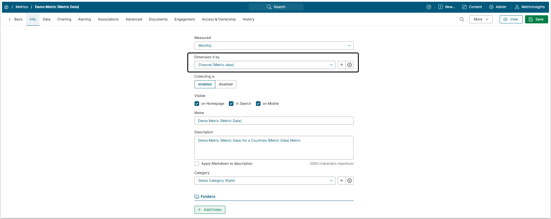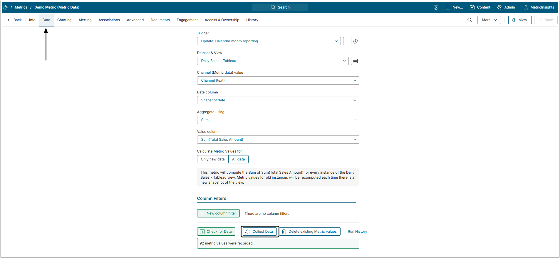 - Value Source: Set this field to "Metric Data".