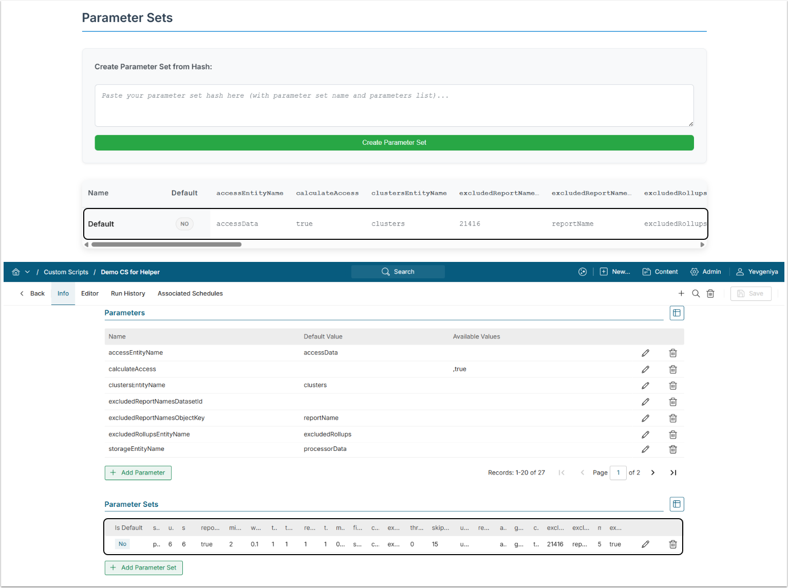 In case you have an identical Custom Script with the Parameter Set configured, you can migrate the Parameter Set to another Custom Script.