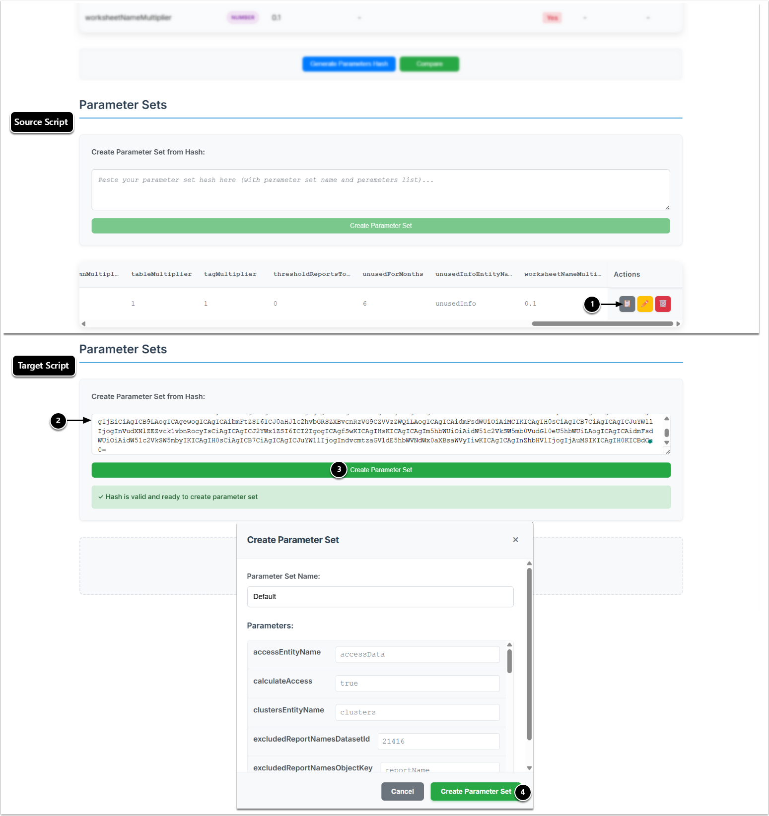 - Copy Parameter Set: Copy the hash from the source Custom Script.