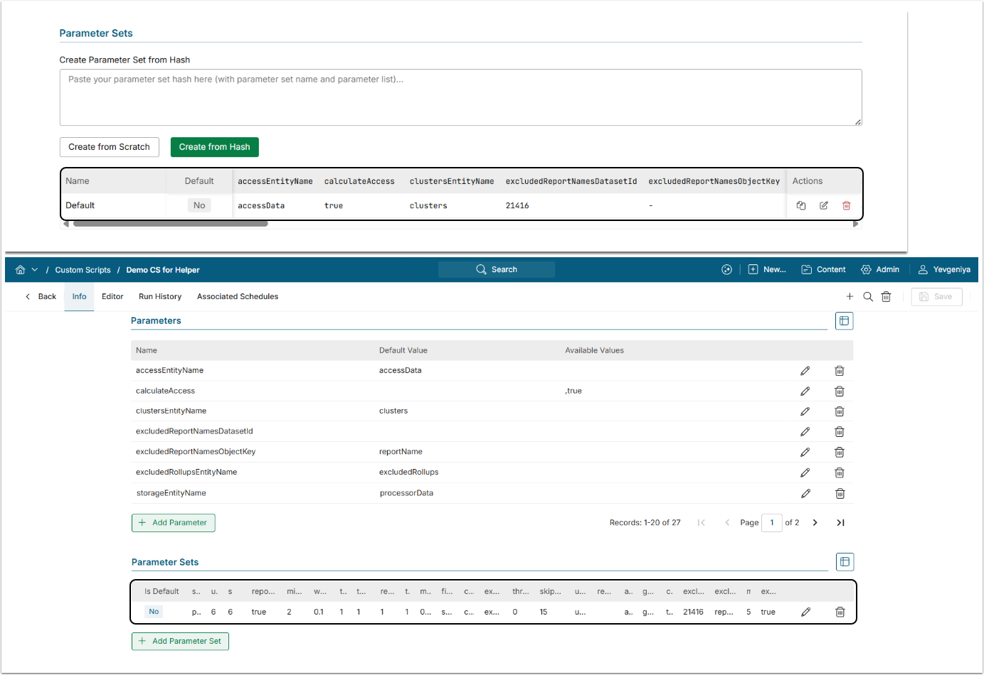 In case you have an identical Custom Script with the Parameter Set configured, you can migrate the Parameter Set to another Custom Script.