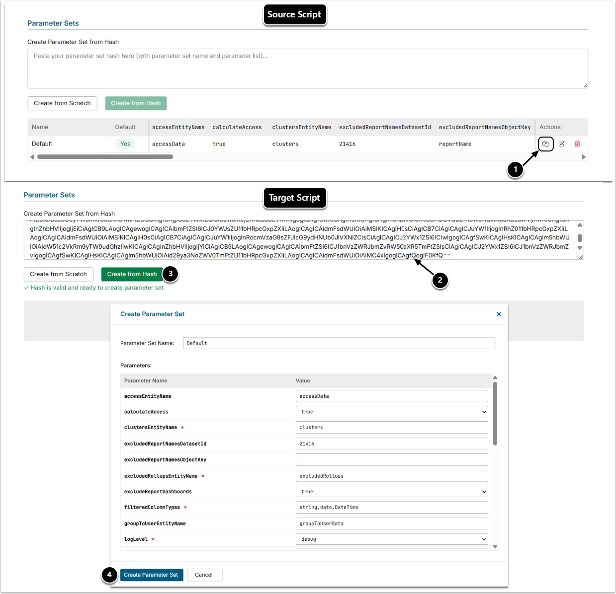 - Copy Parameter Set: Copy the hash from the source Custom Script.