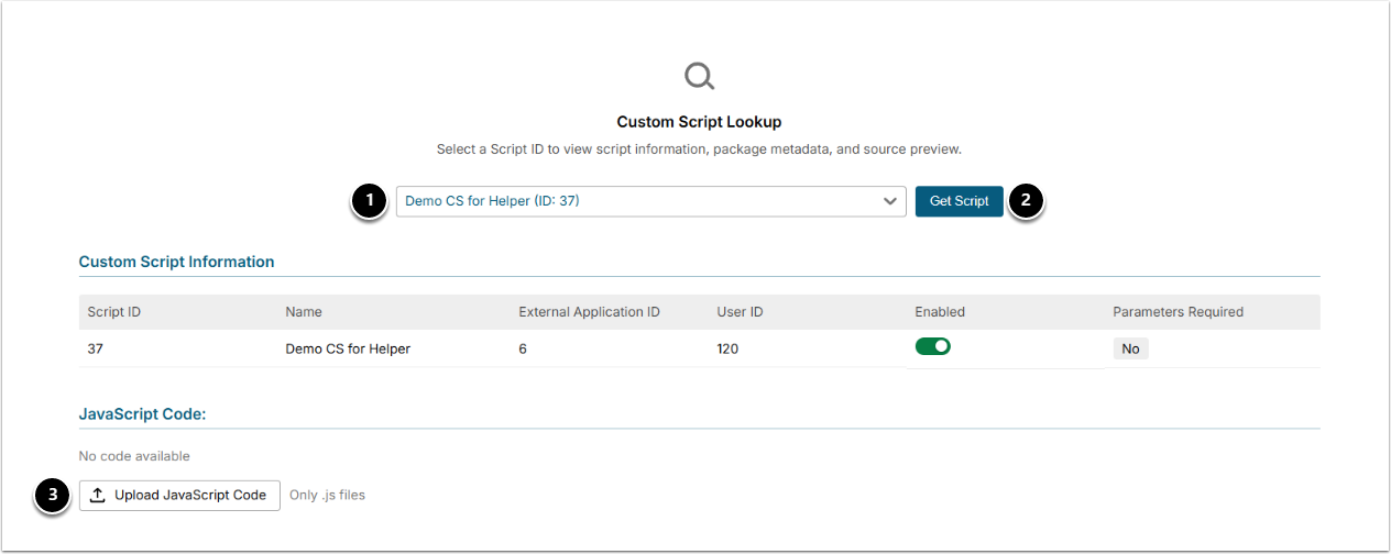 - [Upload JavaScript file]: Upload the latest .js file requested from our support team.