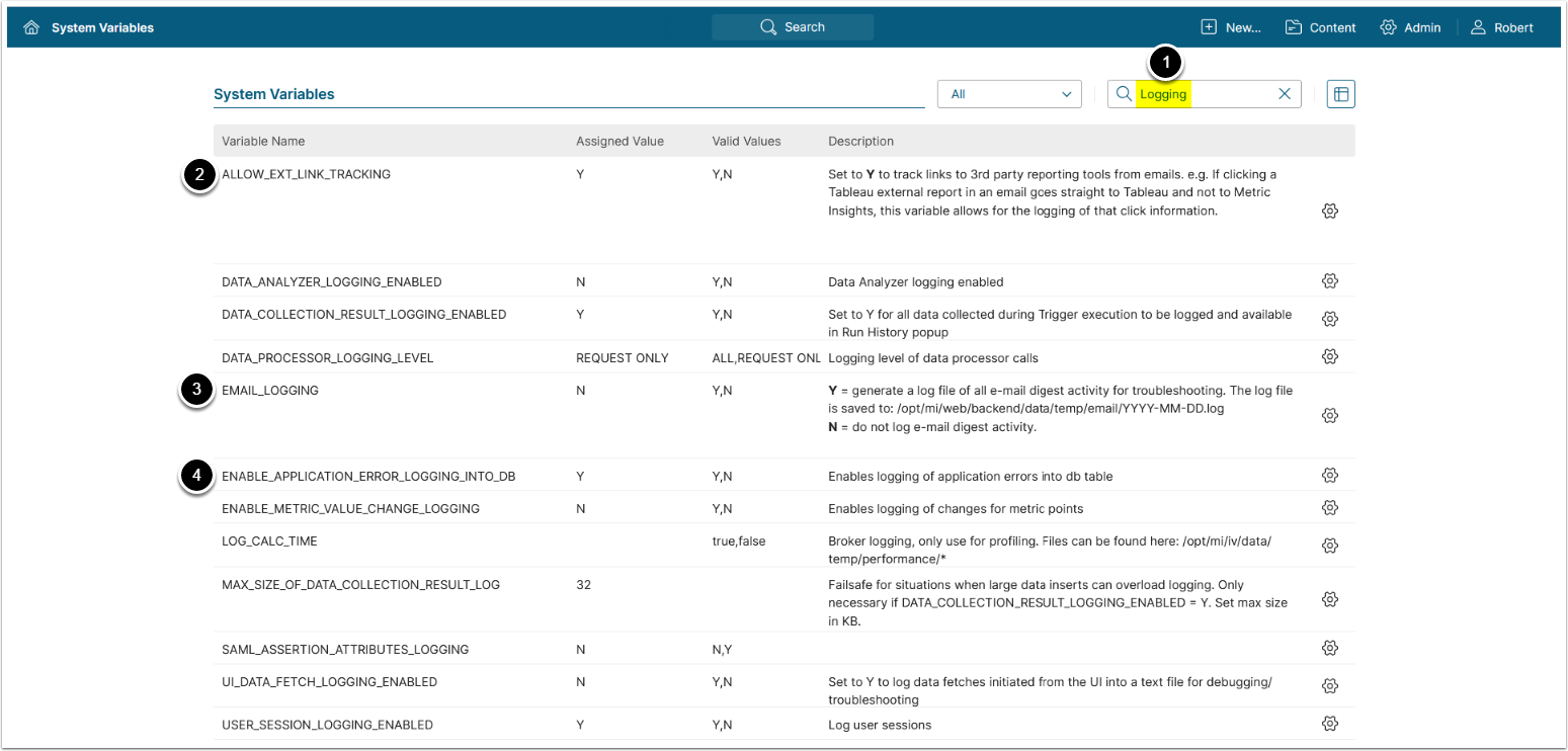 NOTE: This System Variables configures only MI application errors and does not include Data Source connection errors, which have separate logging in the