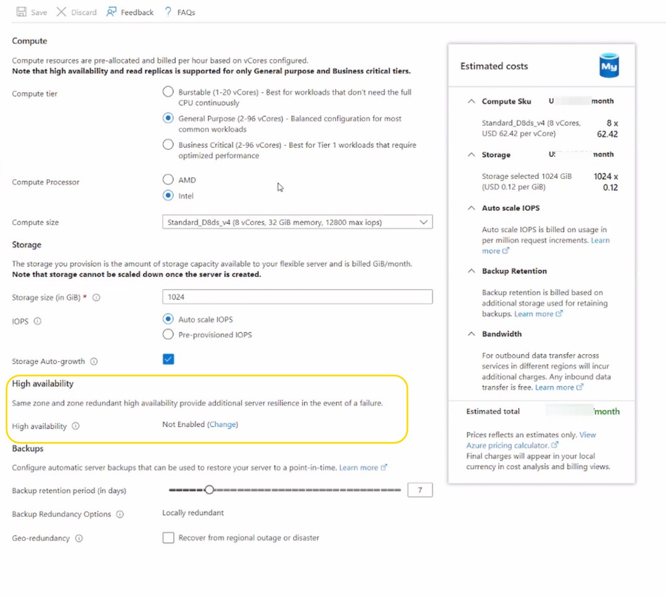 ^ Note: The High availability setting should not be chosen. High availability requires GTID_MODE parameter to be enabled, which is not compatible with Metric Insights.