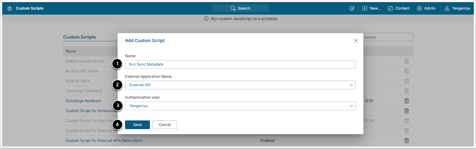 Access Admin > System > Custom Scripts > [+New Custom Script]
