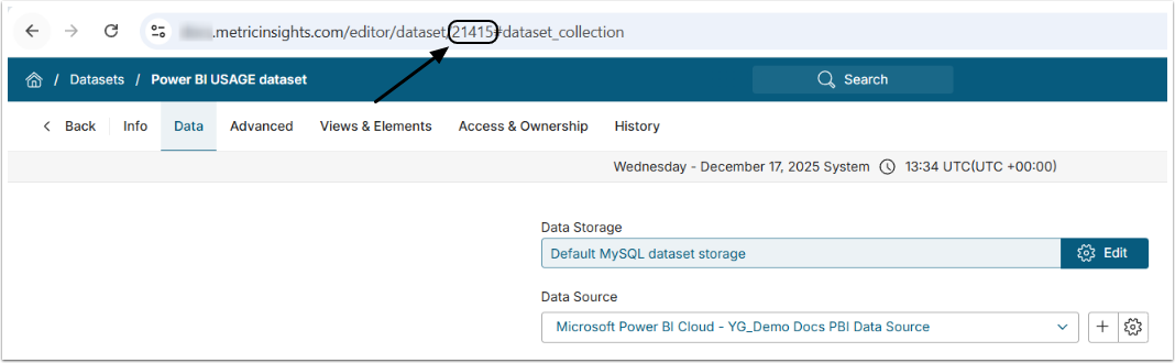 - IMPORTANT: Note the Dataset ID for use in Step 6.2. If you don't need to exclude any Reports, the Parameter can be left blank.