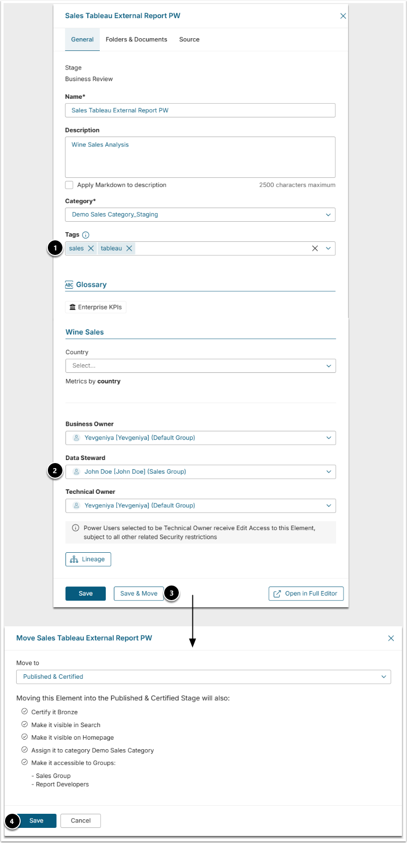- Owners/Stewards: Change ownership.