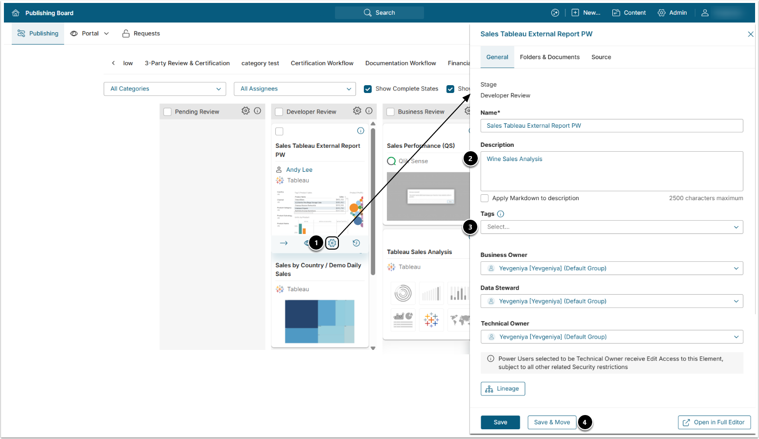 - NOTE: [6.3.4] Power Users will be able to access a Publishing Workflow from the Board if their Group is assigned to the Publishing Workflow Stage associated with this Workflow.