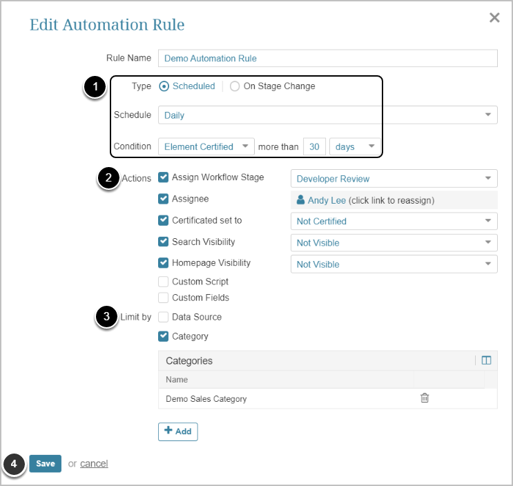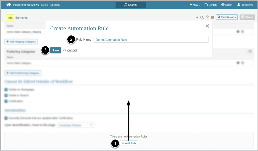 Beginning in v6.3.1, users are able to streamline and automate content management further by means of an additional feature, Publishing Workflow Automation Rules. Conditions of a rule can be executed either on schedule or upon a Stage change.